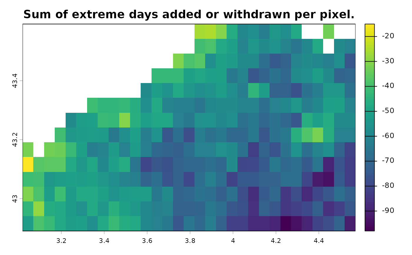 BEE.calc.corrections.RdIt computes the number of modifications between the raw binerised Spatraster and the Spartraster produced using the BEE.id.extreme_events().